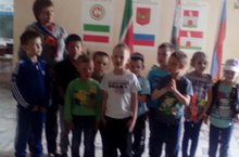 В пришкольном лагере прошла увлекательная игра по станциям "Пещера сказок". Дети на "ковре - самолёте" переместились в волшебную страну. Разделившись на команды, отправились в отсеки пещеры: "Отгадай-ка", "Поиграй-ка", "Нарисуй-ка". В конце все собрались в одном из отсеков (актовый зал), где снова сели на "ковёр - самолёт" и вернулись в лагерь.