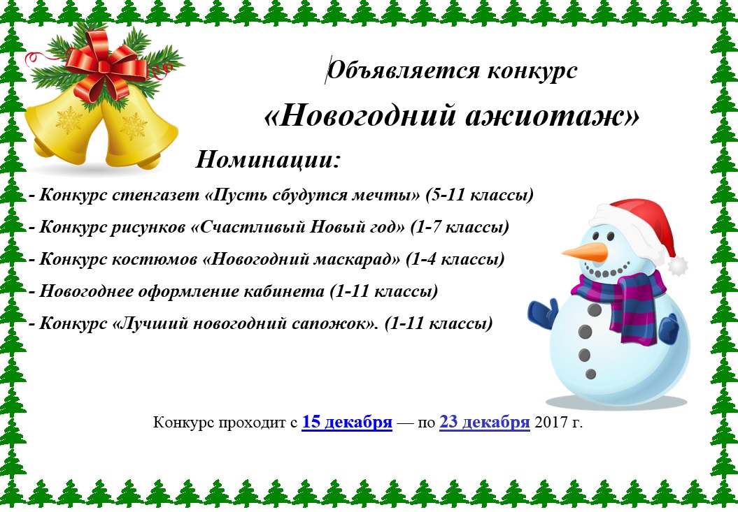 Администрация школы, в предверии Новогодних праздников объявляет конкурс.
