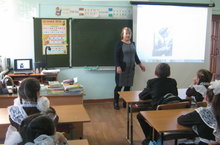 Учащиеся 8 класса выступили перед учениками 4 класса. Они рассказали о земляке Семёне Архиповиче Ларионове (1915—1984) —Герое Советского Союза (1943),чьё имя носит наша школа.