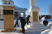 Сегодня прошла традиционная акция «Снежный десант» по уборке территории возле памятника воинам, погибшим в годы Великой Отечественной войны.