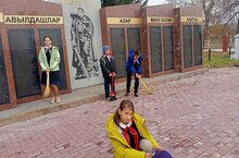 Тимуровцы МБОУ «Старокадеевская СОШ» следят за чистотой территории Парка Памяти.