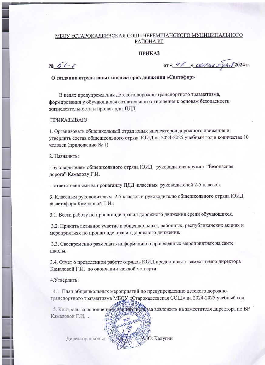 Приказ о создании отряда ЮИД 2024 г.