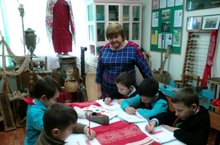 Во втором классе урок изобразительного искусства по теме «Секреты красного цвета в народном искусстве татарского народа» прошел в школьном музее.