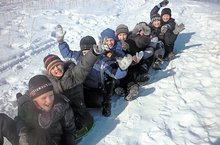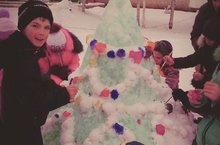 Наконец выпал снег и пора лепить снежные фигуры в школьном дворе.