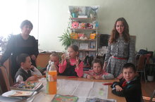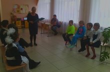 Заведующая сельской библиотекой Татьяна Константиновна пригласила учеников 1-2-х классов с целью приобщения детей к чтению.
