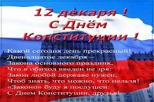 12 декабря - День основного закона России — праздник для каждого гражданина великой страны. Для каждого, кто уважает наше государство, его правовые основы само слово «Конституция» это не пустой звук. И в этот замечательный день стоит поздравить каждого, кто не чужд истории и культуре отечества, ведь Конституция — гарантия всех наших прав и свобод, всего, чего мы имеем.