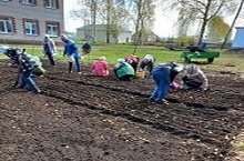 Сегодня учащиеся и коллектив школы трудились на пришкольном участке. Посадили лук, морковь, свеклу, картофель и другие культуры.