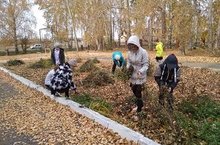 Продолжается работа на пришкольном участке. Сегодня учащиеся очистили клумбы от засохших растений.