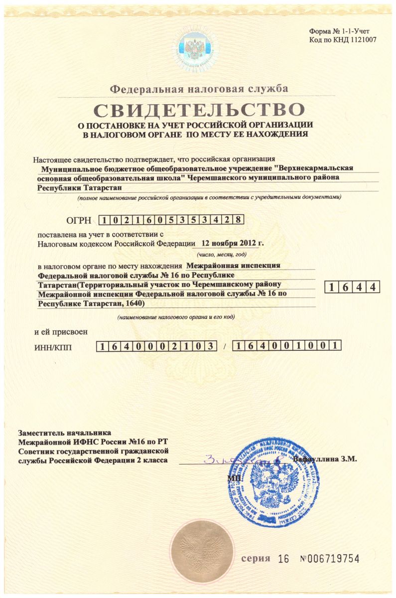 Свидетельство о постановке на учет в НО