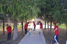 "Язгы игелек атнасы" акциясе кысаларында һәм 9 Май бәйрәме алдыннан юнармейчылар отряды Бөек Ватан сугышында һәлак булганнарга һәйкәл территориясен җыештыруда катнаша.