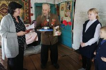 1 В и 4 В классы с классным руководителем и библиотекарем Малого Толкиша Сухоруковой А. В. посетили ветерана (труженика тыла) Чугунова Ивана Сергеевича, поздравили с Днём Защитника Отечества. Были вручены подарки, цветы. Ребята исполнили песню.