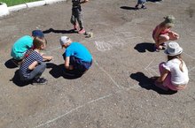 Сегодня в пришкольном лагере прошёл конкурс рисунков на асфальте "Мир детсва"