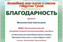 Муниципальное бюджетное дошкольное образовательное учреждение "Бахтинский детский сад"Чистопольского муниципального района Республики Татарстан