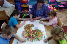 В преддверии нового 2017 года красного петуха. Мы с воспитанниками делаем коллективную работу для украшения группы/Алдында кызыл әтәч яңа 2017 елы.Без укучылар белән бизибез төркемне башкарабыз коллектив эшне.