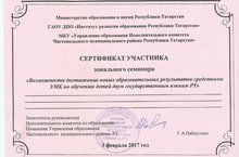 Воспитатели Валиуллина Н. Н. и Главнова С.А. приняли участие в выставке игровых пособий и получили сертификаты зонального семинара – практикума по теме «Создание языковой среды в ДОО в рамках реализации УМК по обучению детей двум государственным языкам через использование игровых технологий» в рамках работы муниципального ресурсного центра «Чишмә» с целью обобщения и распространения передового педагогического опыта по данной теме, на базе МБДОУ «Детский сад №26 комбинированного вида» «АБВГДейка»