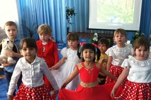 Радостно и забавно встретили долгожданный праздник дети подготовительной группы. Тут и царь Гвидон, и шамаханская царица, спрятавшая петушка, а также избушка на куриных ножках с мешком подарков, который никак не могли найти Дед Мороз и Снегурочка. Дети рассказывали стихи, пели хороводные песни на двух языках, танцевали и, конечно же, получили подарки от детского сада. Огромное спасибо родителям, бывшему музыкальному руководителю Алевтине Николаевне и её внучке Лихачёвой А., ученице 1-го класса