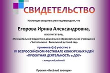 Воспитатели Егорова И.А. и Улитина Н.А. получили свидетельство за участие в всероссийском фестивале конкурсных идей "Проектная деятельность в ДОУ"