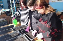 "Язгы игелек атнасы" мәктәп укучылары мәктәп клумбалары өчен чәчәк орлыклары, мәктәп теплицасы өчен яшелчә орлыклары утырттылар. Мәктәптә ашханә өчен матур чәчәк түтәлләре һәм яшелчә үсентеләре булачак.