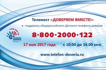 17 мая, в Международный день Детского телефона доверия, всю Россию объединяет телемост «Доверяем вместе» в поддержку общероссийского Детского телефона доверия с единым номером 8-800-2000-122.