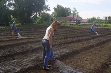 Ребята пришкольного лагеря труда и отдыха "Муравей" активно трудятся на пришкольном участке