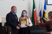 Чествование победителей и призеров заключительного этапа республиканской олимпиады с участием главы Чистопольского муниципального района Д.А.Ивановым. Молодец Гулия .Так держать.!