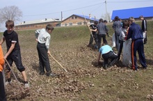 Состояся традиционный субботник по благоустройству села и территории школы.