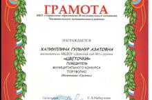 Грамотой "Управление образования Исполнительного комитета Чистопольского муниципального района" награждена Халиуллина Г.А. воспитатель группы "Цветочки", победитель муницыпального конкурса "Портфолио" (номенация "Группа"). 27.02.2014