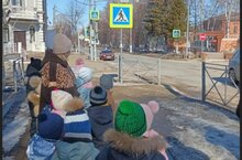и старшей группы "Непоседы" к перекрёстке. Дети закрепили знания о дорожных знаках и сигнала светофора. -