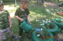 в рамках летне-оздоровительной работы с целью развития экологического воспитания, малыши закрепляют названия, части, цвета, где растут, как ухаживать, вредителей, о пользе растений