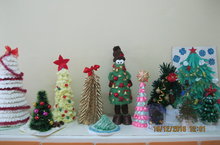 выставка поделок подготовленная родителями и детьми младшей группы №5 "Умники и умницы" проходит в ожидании наступающего Нового года