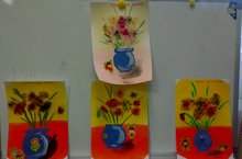 Кружок "Цветик - Семицветик". Ребята, с большим удовольствием продолжают осваивать различные техники рисования. Работы "Курочка" и "Сова" выполняли с использованием аппликации. На 8-ое Марта дети рисовали "Вазу с цветами для мамы", используя пищевые красители и "Веточку сакуры" для бабушки используя бумажные салфетки и маленькие кусочки пластилина для крепления цветов на листе бумаги. Ребята остались довольны своими работами!
