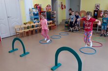Два раза в неделю ребята подготовительной группы с большим удовольствием ходят на занятия в спортивную школу "Гимнаст". Вот такие задания они выполняют, используя различные спортивный инвентарь!