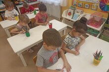 Рисование "Городецкая роспись". Дети старшей группы продолжают знакомится с хохломой. Они учились самостоятельно выбирать элементы для своего узора, подбирали цвета для росписи, красиво располагать узор на заданной форме.