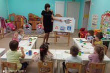 С детьми подготовительной группы, была проведена акция по безопасному поведению на дороге. С воспитанниками были закреплены ПДД,они стали активными участниками акции ,раздавая буклеты и памятки проходящим мимо пешеходам и проезжающим водителям.