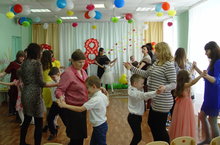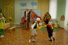 Дети не только читали стихи и пели песни, но и показали свои таланты в играх и танцах: помогали стирать белье и печь блины.