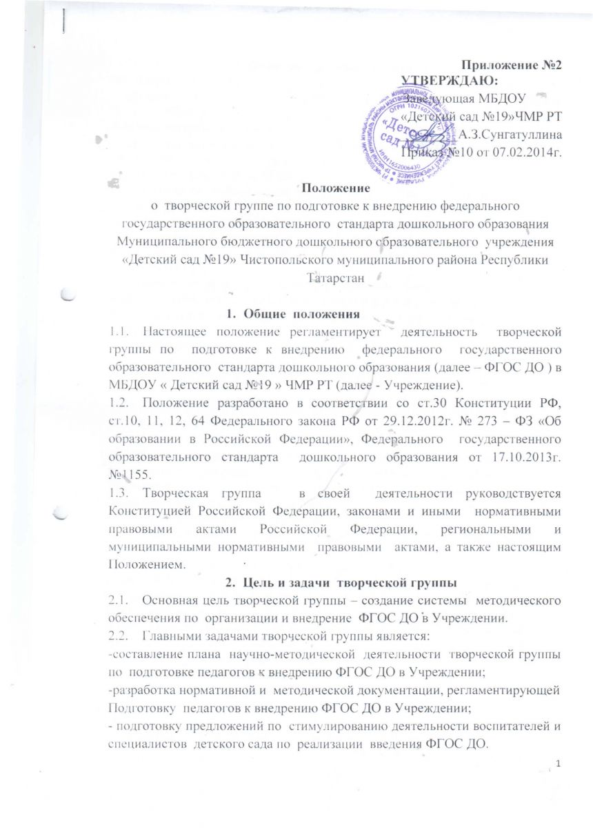 План-график внедрения ФГОС ДО в МБДОУ "Детский сад №19"