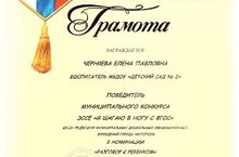 Воспитатель нашего детского сада группы "Кораблик" Черняева Елена Павловна стала победителем муниципального конкурса Эссе "Я шагаю в ногу с ФГОС" в номинации "Разговор с ребенком" .