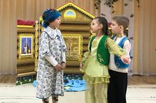 Сегодня наши дети-артисты подготовительных групп, инсценировали татарскую сказку «Три сестры» для дошкольников детского сада. Дети-актеры достаточно долго готовили представление, репетировали, отрабатывали диалоги, движения, исполнение песен и танцев вместе с воспитателем по обучению детей татарскому языку Исмагиловой Л.В. и музыкальным руководителем Маловой А.А. Перед началом показа сказки они волновались, но очень постарались передать образ того или иного героя, поэтому представление получилось ярким, выразительным. Зрителям представление очень понравилось, они долго хлопали артистам и не покидали своих мест в музыкальном зале. Выступление ребят стало генеральной репетицией перед участием в муниципальном конкурсе " Экиятлэр илендэ", на котором будет представлена эта же постановка. Пожелаем нашим артистам удачи и победы в конкурсе!/ Бүген безнең балалар-әзерлек төркемнәре артистлары, мәктәпкәчә яшьтәге балалар өчен «Өч сеңел " татар әкиятен сәхнәләштерделәр. Әкият башланыр алдыннан алар бик дулкынланып, теге яки бу герой образын бирергә тырыштылар, шуңа күрә тамаша матур, матур килеп чыкты. Тамашачыларга тамаша бик ошады, алар артистларны озак вакытлар мәшәкатьләндерделәр һәм музыкаль залда үз урыннарын калдырмадылар. Балаларның чыгышы "Әкиятләр илендә" муниципаль конкурсында катнашу алдыннан генераль репетиция булды. Артистларыбызга конкурста уңышлар һәм җиңүләр телибез!