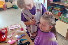 Огромное значение в развитии ребёнка дошкольного возраста принадлежит усвоению знаний, умений и навыков полученных в процессе игровой деятельности. Но совершенно особое место в жизни ребёнка занимает сюжетно-ролевая игра.Старшие дошкольники смелее и разнообразнее комбинируют в своих играх знания, которые они почерпнули в наблюдениях и из рассказов взрослых. Сюжетно- ролевая игра " Парикмахерская" включает в себя много функций. Дети группы "Кроха" с удовольствием играют в сюжетно-ролевые игры. -