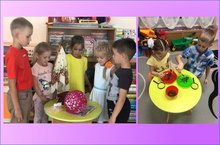 А так же играли в сюжетно- ролевую игру "Напоим куклу Катю чаем"/ "Витаминка" кече яшьтәге төркемдә вак моториканы үстерүгә юнәлтелгән шәхси эш алып барылды. Балалар төзелеш материалыннан корылмалар төзергә, пазлылар җыярга, бауларны тишеккә тыгып чыгарырга өйрәнделәр. Шулай ук "Катя курчагын чәй белән сыйлыйбыз" диеп исемләнгән сюжетлы-рольле уен үткәрелде. -
