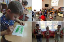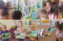 В рамках темы “День юного художника" в группе “Светлячок”была проведена беседа с детьми “Чем и на чем рисует художник”.После беседы дети рассматривали картины известных художников, а также поиграли в игру “Найди отличие в пейзаже, натюрморте, портрете”.Дети рисовали пейзаж с помощью нетрадиционной техники рисовония, где вместо кисточек использовались зубные щетки, ватные палочки, веточка цветка./ “Светлячок” төркемендә “Яшь рәссам көне” темасы кысаларында балалар белән “Рәссам нәрсә белән һәм нәрсәдә рәсем ясый” дигән темага әңгәмә үткәрелде. Әңгәмәдән соң балалар танылган рәссамнарның картиналарын карадылар, шулай ук “Пейзаж, натюрморт, портретның нәрсә белән аерылып торуларын тап”уеннын уйнадылар. Балалар рәсем ясауның традицион булмаган техникасы ярдәмендә пейзаж ясадылар, анда пумалалар урынына теш щеткалары, мамык таякчыклары, чәчәк ботаклары кулланылды.