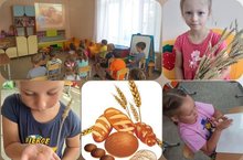 "Топыжка" төркемендә "Икмәк көне" узды. Балалар белән “Икмәк каян алына?” дигән әңгәмә үткәрелде. Балалар башак һәм бодай бөртекләрен карадылар. үзләре ипи пешерүче ролендә булдылар, тозлы камырдан күмәчләр, рогаликлар ясадылар.
