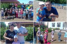 Спортивный досуг "В гости солнышко пришло" в рамках деятельности ТОС №1 под руководством Ваганова В.А. Прошел на игровой площадке, прилегающей к детскому саду./ В.А. Ваганов җитәкчелегендә 1 нче ТОС эшчәнлеге кысаларында "Кояшкай кунагына килде" спорт ялы балалар бакчасы янындагы уен мәйданчыгында узды.