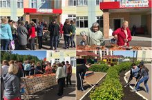 Сегодня, в детском саду состоялся ежегодный трудовой десант по благоустройству территории учреждения./ Бүген, балалар бакчасында территорияне төзекләндерү буенча хезмәт десанты узды.