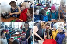 В целях ознакомления старших дошкольников с работой ателье "Пассат", с профессиями швеи, закройщицы, воспитанники подготовительных групп "Кораблики" и "Светлячок" посетили ателье. Работники ателье познакомила ребят с мини - швейным цехом по пошиву и ремонту одежды, в котором находятся специализированные машины./ Өлкән яшьтәге балаларны, тегүче һөнәрләре белән таныштыру максатыннан, "Кораблики" һәм "Светлячок" әзерлек төркеме тәрбияләнүчеләре "Пассат" ательесында булдылар. Ателье хезмәткәрләре балаларны махсус машиналар урнашкан кием тегү һәм ремонтлау буенча мини - тегү цехы белән таныштырды.
