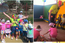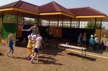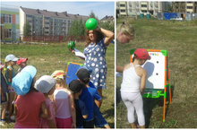 С целью закрепления знаний цветов в игровой форме воспитатели групп "Знайки" Малышевой Юлией Александровной и группой "Почемучки" Салеевой Ольгой Николаевной было проведено летнее развлечение под названием "Радуга" во дворе игровой площадки по адресу Полющенкова 8. /Уен формасында төсләр беркөтү максаты белән "Знайки" төркеме тәрбиячесе Малышева Ю.А. һәм "Почемучки" төркеме тәрбиячесе Салеева О.Н. Полющенкова 8 адресы буенча уен мәйданында "Салават күпере" исемле җәйге күңел ачу уздырдылар.