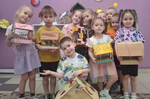 Так, ребята средней группы "Звездочки" совместно со своими родителями, принимают активное участие в выставке кормушек.