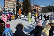 Любимый персонаж детей - скоморох, устроил весёлые масленичные забавы: дошкольники играли в различные игры, участвовали в конкурсах, водили хороводы.
