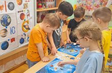 Так, в процессе игровой деятельности, с помощью авторской разработки, ребята группы "Смешарики" обогащают свои знания о далёком и загадочном космосе. -