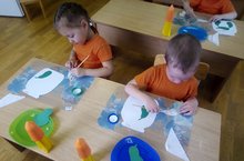 "Малышок" төркеме балалары көзнең матурлыгын күзәттеләр һәм "Көзге яфрак",- дигән аппликация эшләделәр.